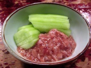 それに「酒とう」。これは鰹の内臓の塩辛。これも初体験の味。今回は以上の薩摩ならではの肴を頂きましたが‥