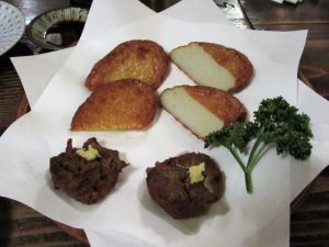 まずは定番「つけあげ」。いわゆる「薩摩揚げ」ですね。先日の「はる日」さんや「辰巳屋」さんでは「薩摩揚げ」でしたが「薩摩おごじょ」さんでは正統的に「つけあげ」と呼んでます。手づくりの素朴さがとても良い。特に下ふたつの「つみれ」は最高です。