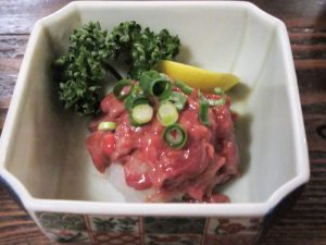 もう三品、忘れられない味を。「かつおの腹皮」です。大トロ部分だからでしょうか、トロトロで脂の乗りがとても良くご飯が欲しくなりますね。