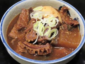 「牛もつ煮込み」。この店の名物と言うだけあってとても美味しい。見た目よりも、あっさりマイルドな煮込みは好感が持てますよね。