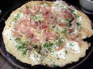 「せんて玉子焼」。店の名物はやはり逸品ですね。お好み焼のような見た目に反して柔らかい舌触りと玉子の香りが絶妙でコレはいくらでも、いけそう。