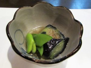 お通しは初夏らしく「茄子煮」を。