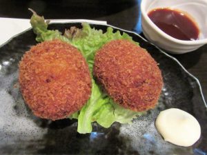 「まるよしコロッケ」。店のオリジナルメニュー。サクッと甘さが伝わり、さすが北海道。根菜をメインに使うと無敵ですね。