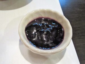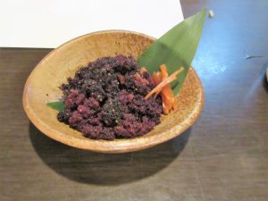 「タラバガニ内子正油漬け」。こちらは「まるよし」さんからのサービス。「外子」と一緒に「内子」も食べてみてとの粋な計らい。うれしい~ !