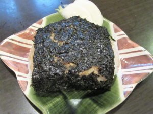 〆はマスターが薦めてくれた「松前産天然岩海苔」で握った「おにぎり」。年間でも少量しか入荷されず地元以外ではお目にかかれない幻の海苔だそう。今日「松前」に行ってきたのに、その知識がない為、見過ごしてました。と言うよりも「松前漬け」ばかり探してましたね。残念‥。気を取り直して頂いてみるとホントに幻の如く美味しいですね。磯の香がさらに酒飲欲を誘います。但しこの海苔、値段は少々お高いと言う事で買ったかどうかは迷うところですけど、やっぱり味を知ってたら買ったかも‥。さてさて‥