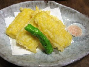 「トウモロコシ天ぷら」を。北海道の野菜はホント美味い。どれも甘くて歯応えがあり最高 ! 特に「アスパラ」の美味しさに感動して‥