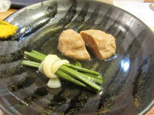 まずは「さんまのすり身」と「わらび」を。大皿に辛子も付けて盛ってくれます。お味は‥もちろん美味しいです。「すり身」は良く出汁が染み込んでいて口当たり良く「わらび」は本来のシャキシャキ感を損なわずでとても良いです。