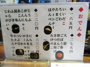 最後は「とうふ」と「ロールキャベツ」を。酒が進む「仙台おでん」。これは良い店を見つけました。是非、また来ます。そうそう「おでん」以外にもこんなのもありました‥