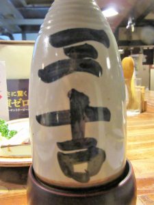 ここは夏でも燗酒 ! と言う事で「高清水」を頂きます。「三吉」オリジナル徳利に注がれて登場です。