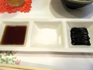 これを「ソース・塩・味噌」のお好みで頂きます。オォ、どれもこれも美味いです。とても、さっぱりしてるからサクッといけます。さすがですね~。これは日本酒にも合いそうだと思い‥