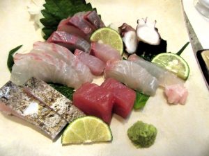 「刺身の盛合わせ」を。「さはら・ひらめ・かんぱち・たこ・たい・まぐろ」の6種盛り。全て瀬戸内の魚かは聞くの忘れました。