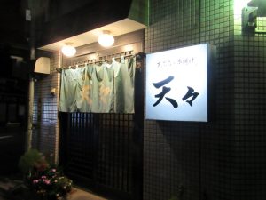 「天々」さん。サブに「天ぷら・串揚げ」とあります。ホントは瀬戸内の魚でもと思ったのですが何となく惹かれて入店です。