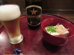 「男の隠れ家」のとおり、赤くて丸い折敷とTVもBGMもない静かな空間が自分だけの隠れ家を形成してくれます。もっとも微かですが耳を澄ますとラジオの音だけが聞こえてきます。これも不思議な心地よさを演出してくれます。お通しの「温奴」も変わらずで良いです。