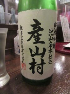 酒は球磨焼酎をと思ったのですが冷蔵庫を覗くと「純米吟醸 産山村」の一升瓶が。昨年、「純米焼酎 産山村」は頂きましたが日本酒も造っているとは知りませんでした。「純米焼酎 産山村」は最も気に入った焼酎だったので日本酒はどうだろうと‥