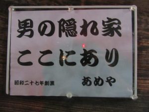 「男の隠れ家ここにあり 昭和二十七年創業 あめや」。この有名な言葉に惹かれて一年前に入ったのを想い出します。