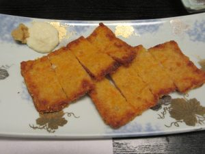 そして中国地方ではお馴染みの「がんす」。「いつき」さんは「焼きがんす」として提供しています。ここまで来ると日本酒がほしくなってきます。