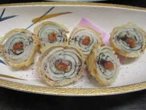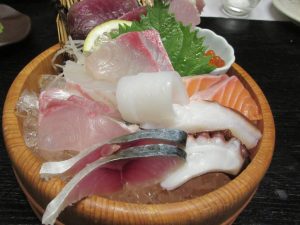 そして最高だったのが「タチウオ鳴門天」。「タチウオ」と言えば瀬戸内海。漁獲量の多さは有名ですがその「タチウオ」で紫蘇と梅を鳴門状に巻いて揚げた逸品。これはホント美味しくて酒に合うお薦めの肴 ! もちろん鮮魚達も美味しくて「魚処」と銘打ってるだけあります。その「いつき」さんの魚達をさばいているのが‥