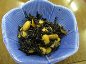 1階は満席のため2階に案内されました。とりあえずお通しの「ひじき煮」を肴に‥