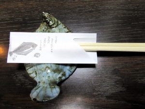 ヒラメの箸置きと箸袋が何とも言えずカワイイですね。まずは‥