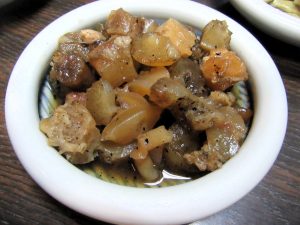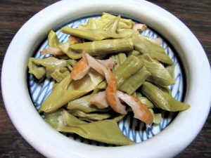「いたどり」。どれもこれも美味しい。特にこの「いたどり」は聞くのも初めて食すのも初めて。タケノコみたいなこの見た目、主に高知県で食されているそうで、まさに女将さんが高知の人。色々な料理に用いられているそうです。コリコリした食感に箸が止まりません。