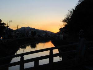 その「神幸橋」に立ち西方を望むと「宇和島港」。夜の帳が下りつつあるのを見てを思い出したのは先程の‥