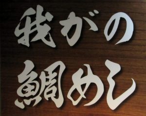 案内された席に着座するとテーブルの小皿が目に入りました。そこには「鯛はめでたい出あい」の文字が。そうです、そうです ! 今日は「鯛(めし)目当です。