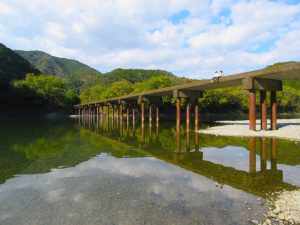 こちらは「佐田沈下橋」。全長291.6mと「沈下橋」の中でも最長だそうです。この他にも50近くの「沈下橋」があるそう。そんなにあるとは思いもしませんでした。この後、向かったのが‥