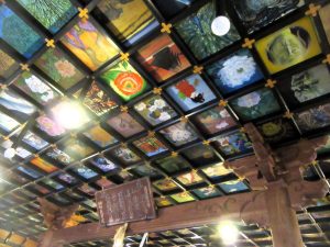 アートと呼ばれる由縁はこのお寺の本堂天井を飾る575枚の様々な板絵。多くの方がそれぞれの思いで描いた絵だそうです。そこから高知市内に向かい‥