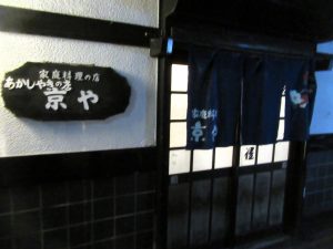 「はら たいら」さんが贔屓にしていた居酒屋があります。屋号は「京や」。今晩はそこで一杯です。但し「高知」を目指すにのにはルート上、自然と入ってくるのが‥