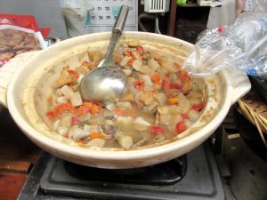 興奮気味に腰をおろすと目の前には美味しそうな煮物が‥。「おぶつじ」と言う高知の郷土料理だそうです。これでまずは‥