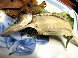 そこで「桂月 蔵出し 原酒」を頂きます。女将さんお薦めの酒。但しこの酒、アルコール分が19度と日本酒の中では高めなので注意が必要。飲み口はスッキリしていて甘味と辛味の中間位。だから肴の邪魔をせず幾らでも入りそう。だけど注意するようにと女将さんからも言われました。
