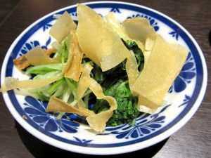 お通しの水菜に春巻きの皮を散らしたコイツは結構イケます。「勝庵」さんは基本、洋食系。但しこういった和や中も織り交ぜてくる心憎いところがあります。