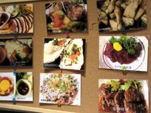 コルクボードに貼られた料理の写真も分かり易くてチョイスがしやすいですね。