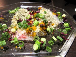 イタリアンで。「真鯛のカルパッチョ」。これに副菜として‥