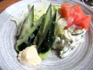 「生野菜サラダ」も忘れずに付けて。秀逸なのはこのドレッシング。喫茶店の味を思い出す味わいが何とも懐かしい。