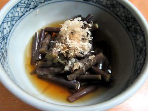 アクセントは「ワラビひたし」。さて「フナベタ」ですが僕は初めて聞く魚です。これを刺身で食すのは新潟県だけだそうです。味はとても淡白。それでもほのかな甘みを感じて身体に優しいだろう味わいは贅沢ささえ感じます。