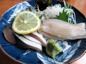 次は魚介を少々。「〆サバ」と「フナベタ刺身」に‥