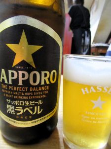 「黒ラベル」をオーダー。グラスには屋号の「HASSEN」の文字が。欲しい人が結構いるそうです。