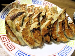 そして、噂の餃子。見た目のキツネ色とちょい焦げとサイズ感が食欲そそります。皮は薄めで具はぷっくり。口に入れるとすぐに「おお確かに旨い」の感想。これはご飯よりもビールに合う感じ。あっという間に1人1本の瓶がなくなります。2本目を頼むとすぐに‥