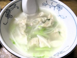 「水餃子」。このスープに「チャーハン」はGoodです。ここで瓶、2本目も終了。3本目をオーダー。