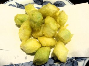 「新玉ねぎ天ぷら」。どちらも甘くてカラッとして好食感。