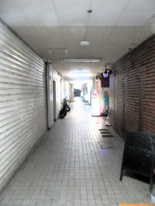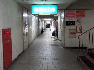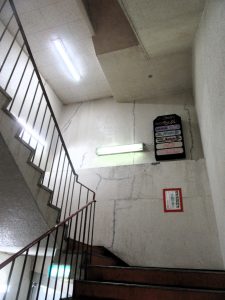 全く違った雰囲気の場所へ。このダークな感じのビルの中にお目当ての居酒屋があります。