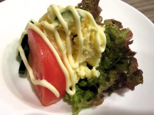 そしてお約束の「ポテトサラダ」。ここのは後がけマヨタイプ。なので「ポテト」自体は優しい味付けです。