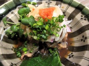 合わせて久し振りの「ごまさば」。実はそれほど好みでは、ありません。どうしても醤油の味が気になって‥。但しこ、この「さば」。魚自体はコリコリして臭みもなく美味しいです。