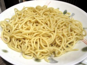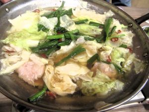 「チャンポン麺」を入れて仕上げました。この麺が実に、もちもちしていて飽きがこない。これも平らげると、さすがに腹いっぱいです。以上の旨い博多飯に大満足。この安くて美味い料理を醸してくれたのが‥