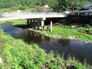 「津和野川」のほとり。架かる橋は「津和野大橋」。「寅さん」にも出てくる場所です。