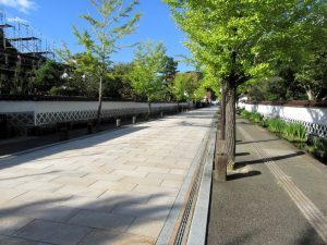 「殿町通り」。見える鱗壁の中にある建物は復元された「藩校養老館」。劇中に登場した当時は図書館だったそう。