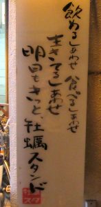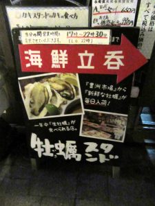 「牡蠣スタンド」さんへ。少し時間が遅くなってしまいましたが「open」の文字と「牡蠣」はまだあるとの事で店へ入ります。