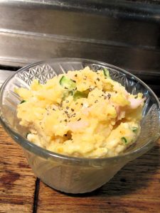 「赤星」には「ポテサラ」を。好きな胡椒がパラリとかかり、この感じは良い !