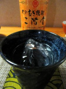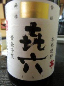 お酒をもう一種。宮崎県の芋焼酎㐂六」をお湯割りで。まろやかな味わいが「漬物」に良く合います。